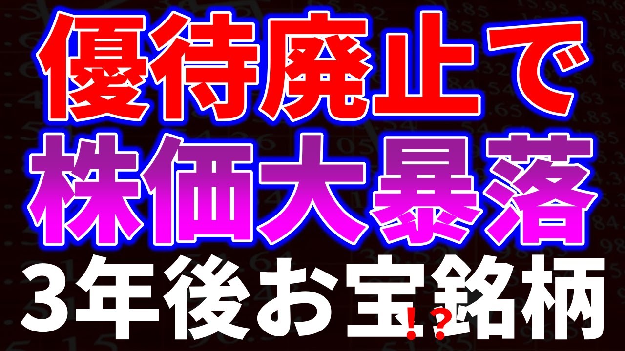 優待廃止で株価大暴落、3年後お宝銘柄!?は凄いですよね、、、株式優待の情報について語っているオススメのユーチューバー。