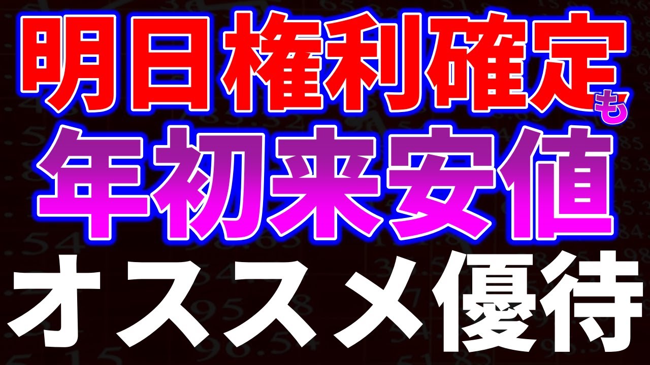 権利確定直前も年初来安値更新!オススメ優待銘柄は凄いですよね、、、株式優待の情報について語っているオススメのユーチューバー。