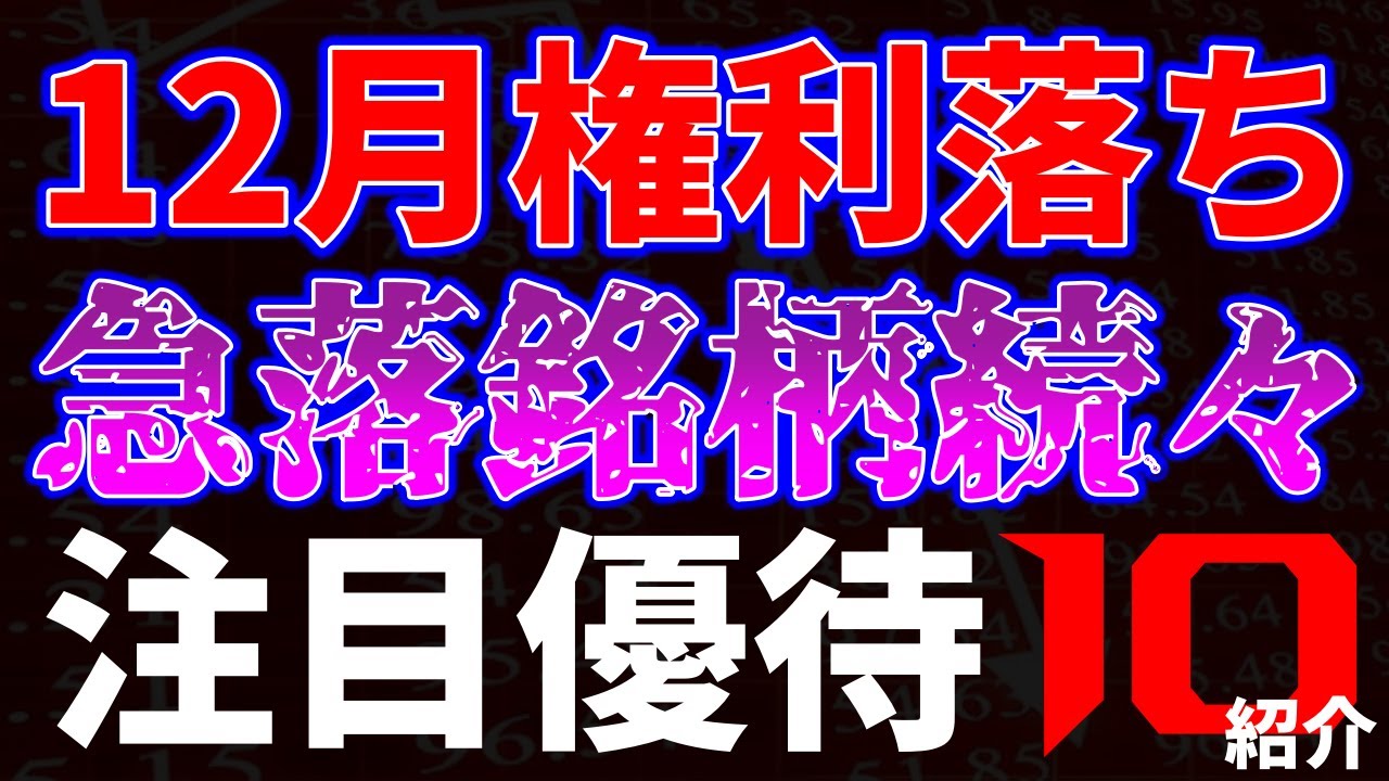 12月権利落ちで急落銘柄続々!注目優待10銘柄紹介は凄いですよね、、、株式優待の情報について語っているオススメのユーチューバー。
