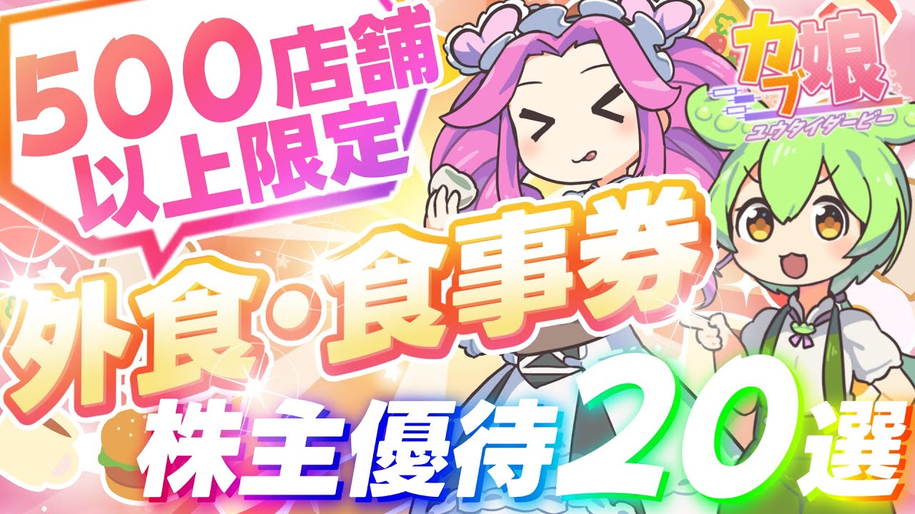 【第2弾】500店舗以上の外食・飲食店の株主優待20選【新NISA/ずんだもん/おすすめ/ランキング/カブ娘】㉕は凄いですよね、、、株式優待の情報について語っているオススメのユーチューバー。