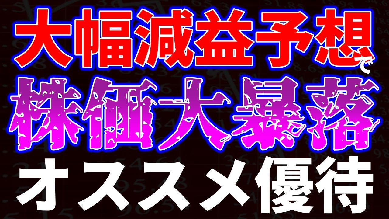 大幅減益予想で株価大暴落!オススメ優待銘柄は凄いですよね、、、株式優待の情報について語っているオススメのユーチューバー。
