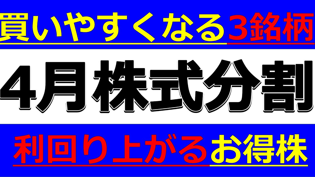 4月の株式分割で買いやすくなる3銘柄!利回り上がるお得株も!は凄いですよね、、、株式優待の情報について語っているオススメのユーチューバー。