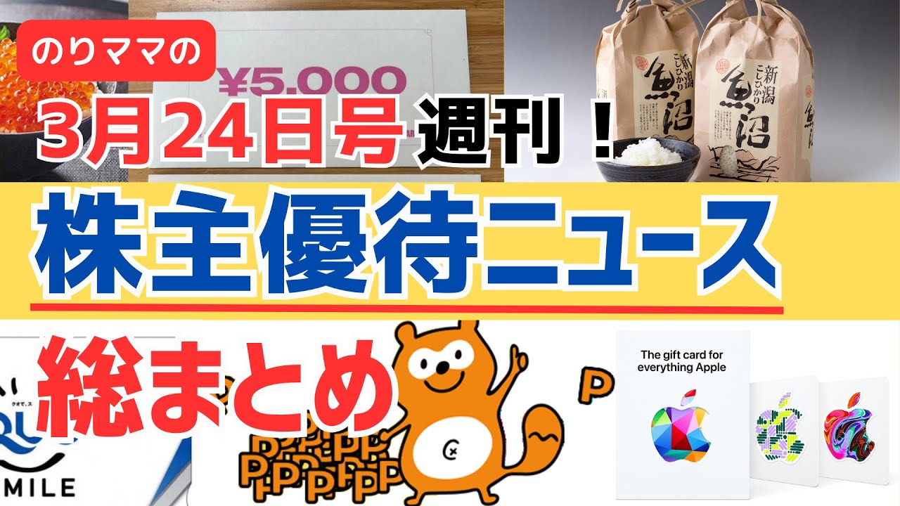【Appleギフトカードが貰える!】3/24号週刊!株主優待ニュース総まとめ!は凄いですよね、、、株式優待の情報について語っているオススメのユーチューバー。