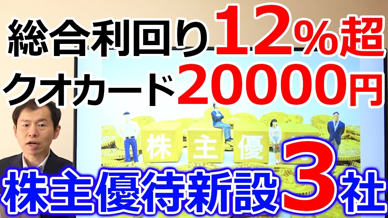 総合利回り12%超え!クオカード20000円!優待変化の兆し 株主優待新設した3社は凄いですよね、、、株式優待の情報について語っているオススメのユーチューバー。