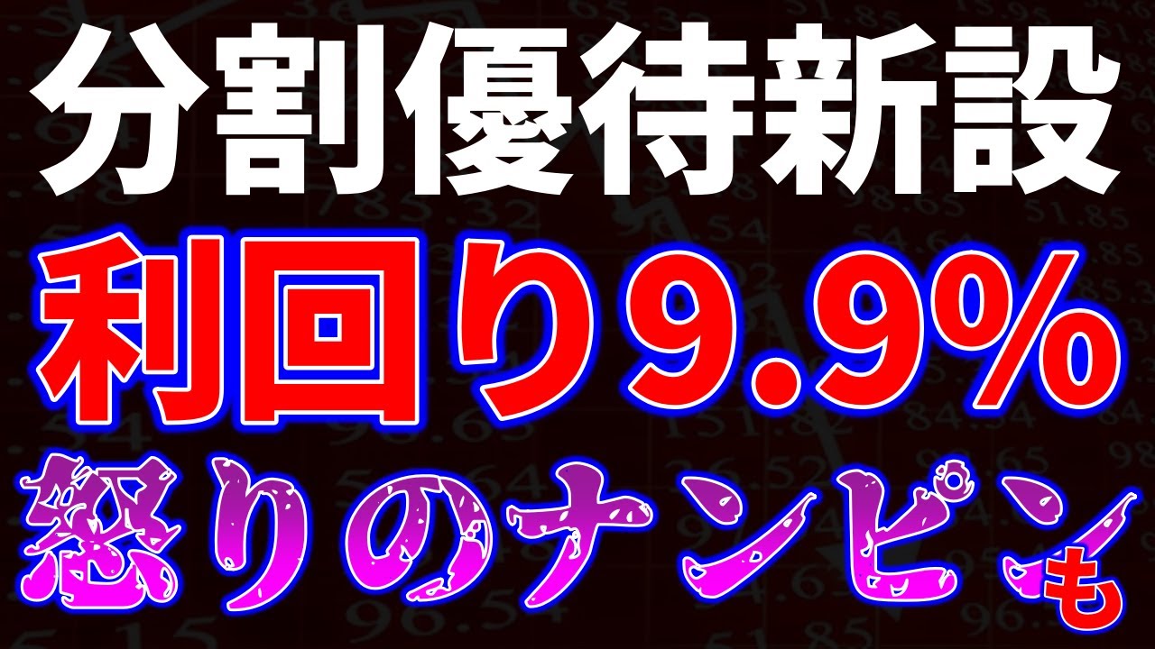 分割優待新設で利回り9.9%!怒りのナンピンもは凄いですよね、、、株式優待の情報について語っているオススメのユーチューバー。