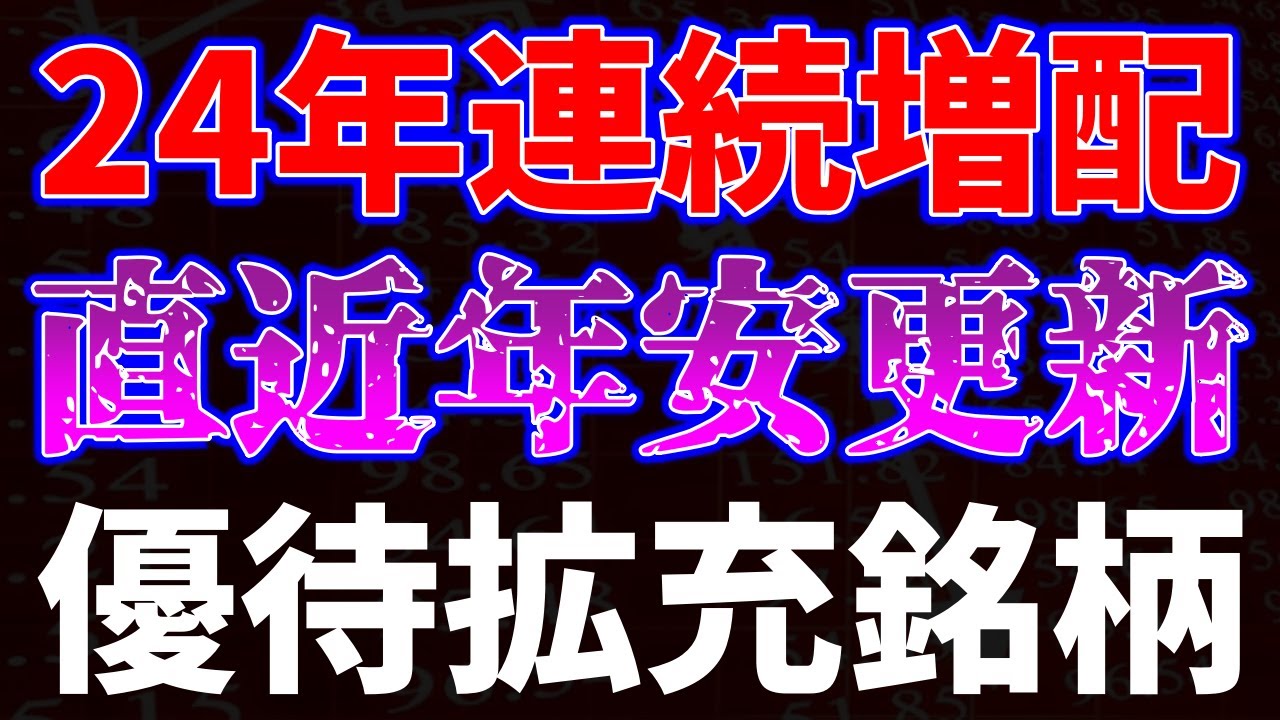 24年連続増配!直近年初来安値更新の優待拡充銘柄は凄いですよね、、、株式優待の情報について語っているオススメのユーチューバー。