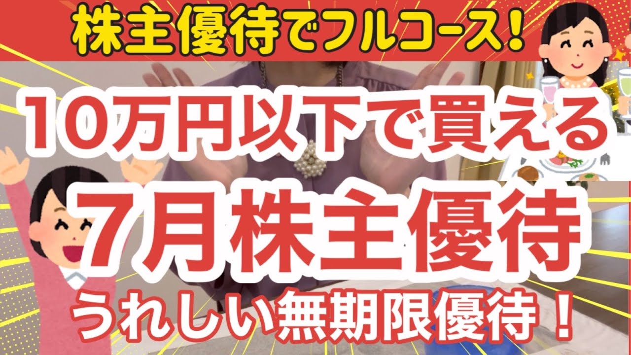 【必見!】7月株主優待!10万円以下で買える!うれしい無期限優待到着!株主優待でフルコース!計12銘柄を紹介!は凄いですよね、、、株式優待の情報について語っているオススメのユーチューバー。