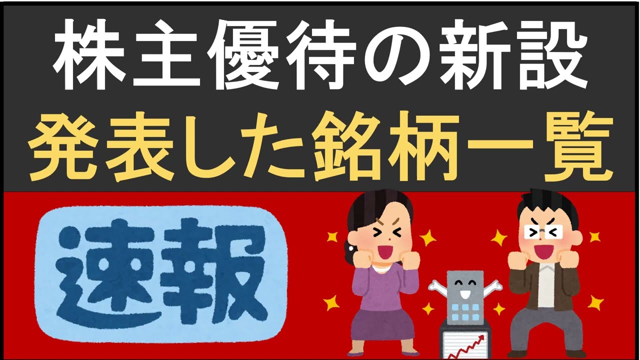 株主優待の新設を発表したお得な銘柄をまとめてご紹介は凄いですよね、、、株式優待の情報について語っているオススメのユーチューバー。