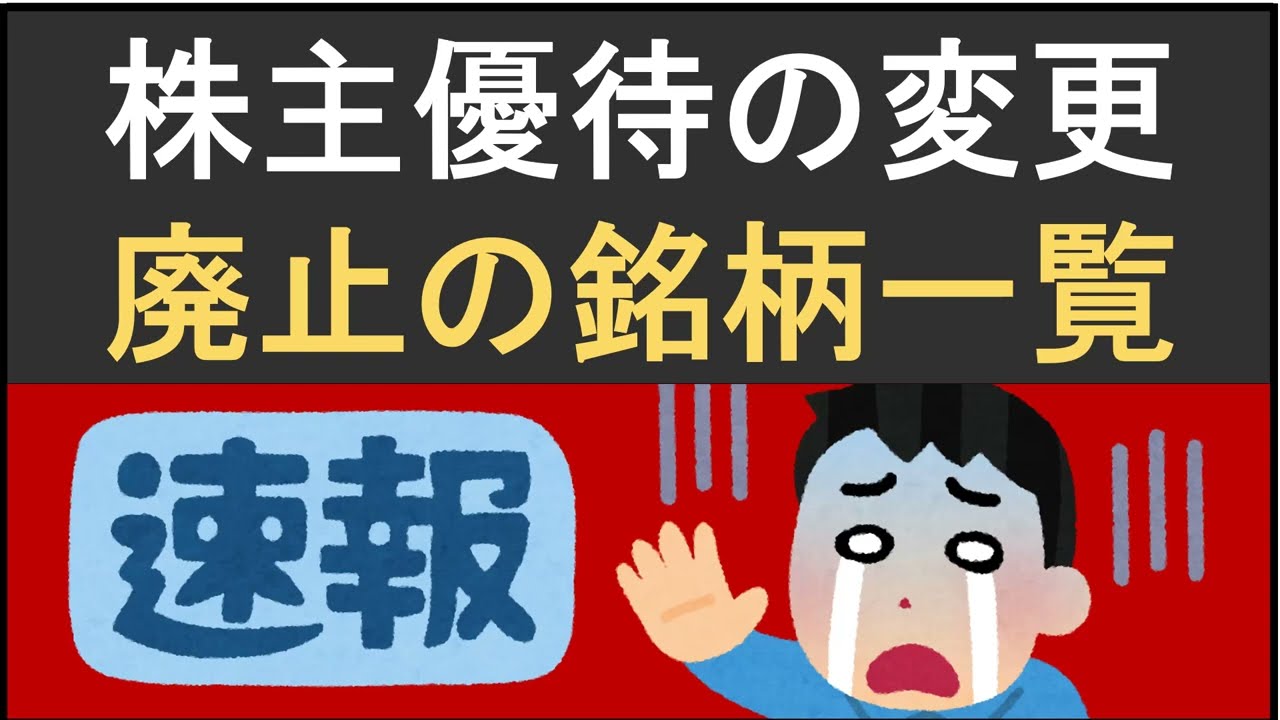 速報!株主優待の変更・廃止を発表した銘柄をまとめてご紹介は凄いですよね、、、株式優待の情報について語っているオススメのユーチューバー。
