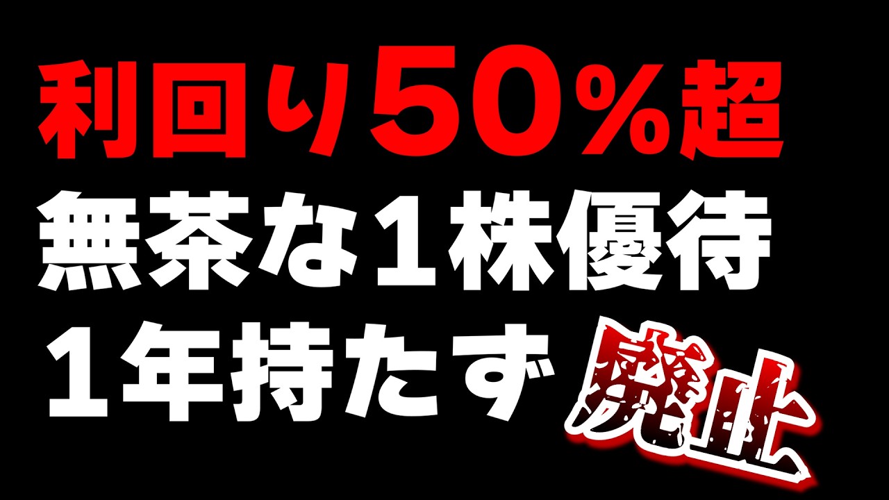 優待利回り50%超の1株優待、1年持たず廃止となるは凄いですよね、、、株式優待の情報について語っているオススメのユーチューバー。