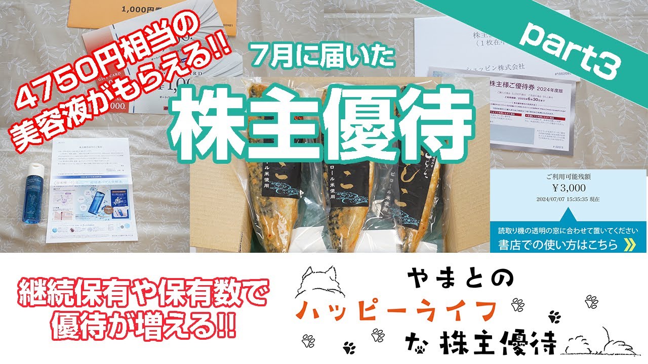 【株主優待】保有数、継続保有で優待がどんどん増える!!4750円相当の美容液も!!7月に届いた株主優待part3は凄いですよね、、、株式優待の情報について語っているオススメのユーチューバー。