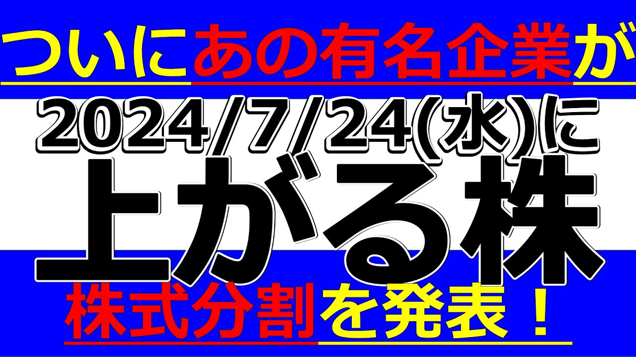 2024/7/24(水)に株価が上がる株、株式投資・デイトレの参考に。ついにあの有名企業が株式分割を発表しました!