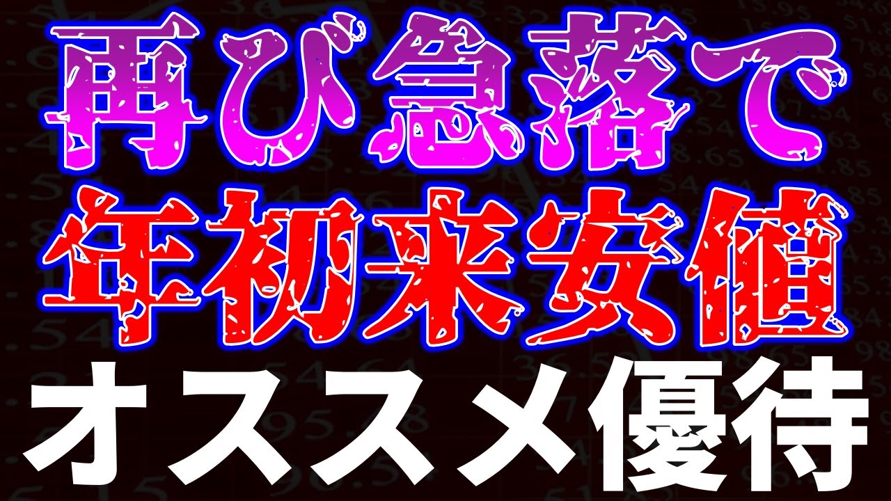 再び急落で年初来安値更新!オススメ優待銘柄は凄いですよね、、、株式優待の情報について語っているオススメのユーチューバー。