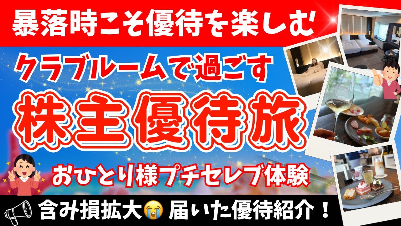【株主優待ひとり旅】クラブフロアで過ごすプチセレブ体験 /含み損拡大も届く優待♪暴落時は株主優待で乗り切る!は凄いですよね、、、株式優待の情報について語っているオススメのユーチューバー。