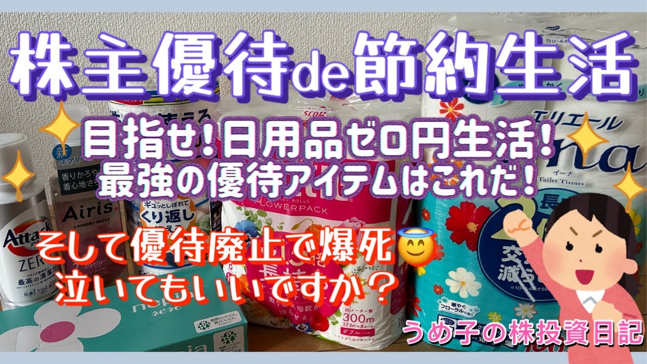 【株主優待】優待廃止が悲し過ぎて、泣いてもいいですか?( ;∀;)そして日用品銘柄最強は、これかもしれないと気付いた日は凄いですよね、、、株式優待の情報について語っているオススメのユーチューバー。