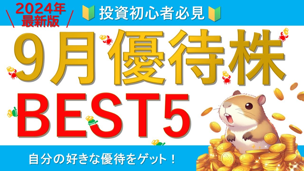 【お得な優待盛りだくさん】おすすめの9月優待株BEST5【配当もゲット】は凄いですよね、、、株式優待の情報について語っているオススメのユーチューバー。