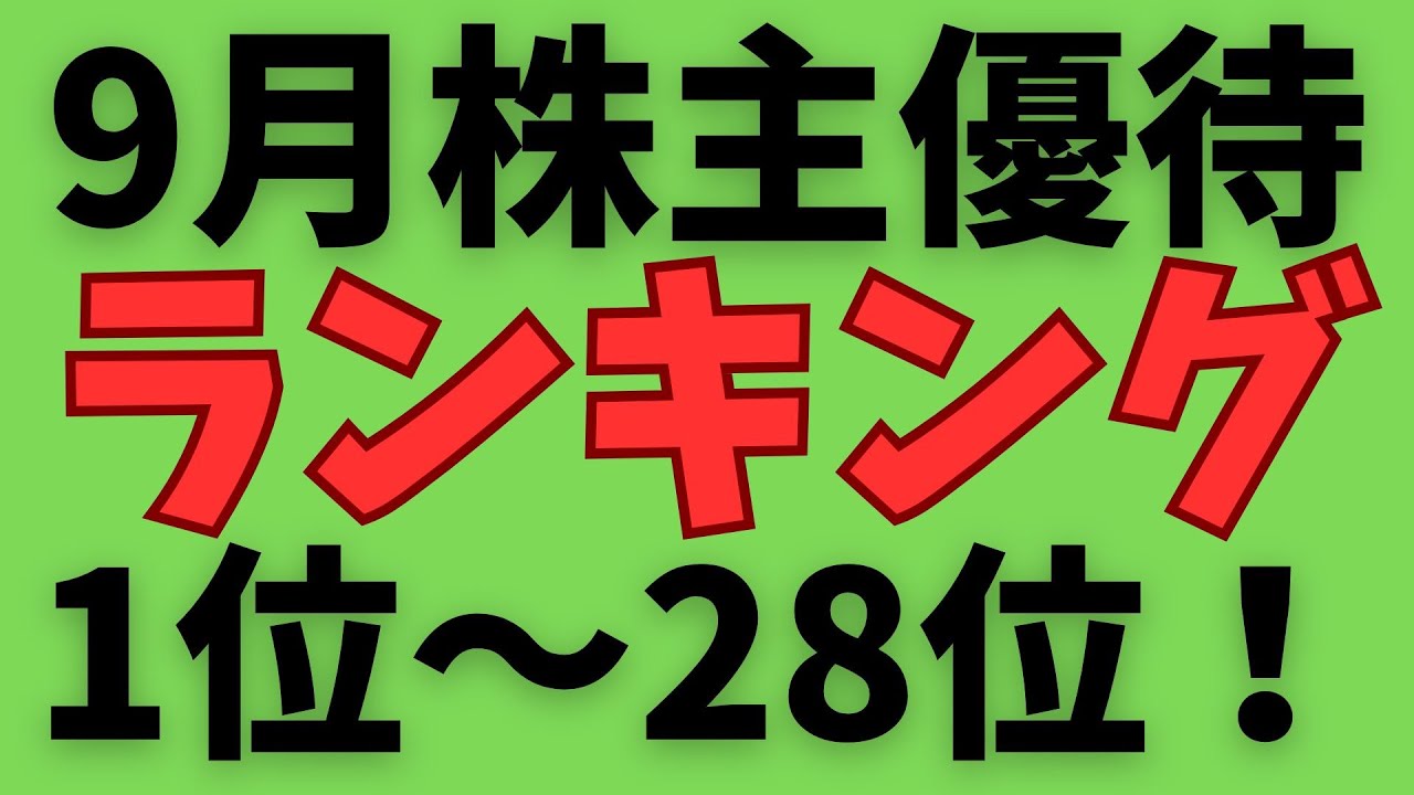 【必見】1位はみんな知ってるあの銘柄!?9月株主優待ランキング1位~28位!は凄いですよね、、、株式優待の情報について語っているオススメのユーチューバー。
