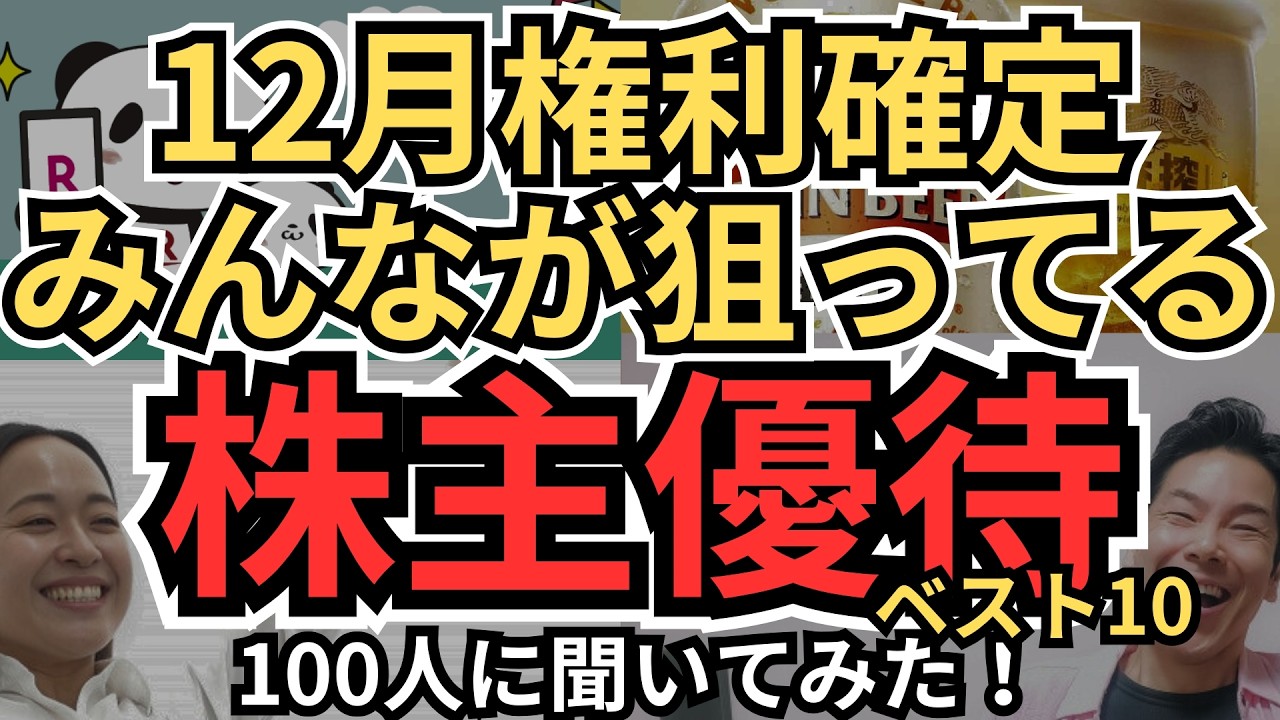 【12月の株主優待】12月権利確定で、必ず押さえるべき優待銘柄は?総合利回り4~31%も!超お得なイチオシ優待銘柄、100人に聞いてみた!は凄いですよね、、、株式優待の情報について語っているオススメのユーチューバー。