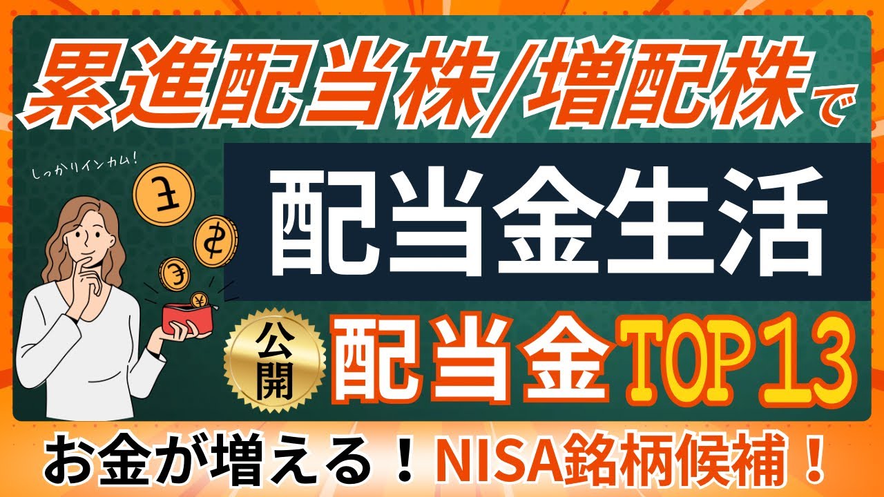 【配当金生活】どんどん増える配当額公開!高配当株TOP 13!増配株&累進配当株だからNISAにもピッタリ!は凄いですよね、、、株式優待の情報について語っているオススメのユーチューバー。