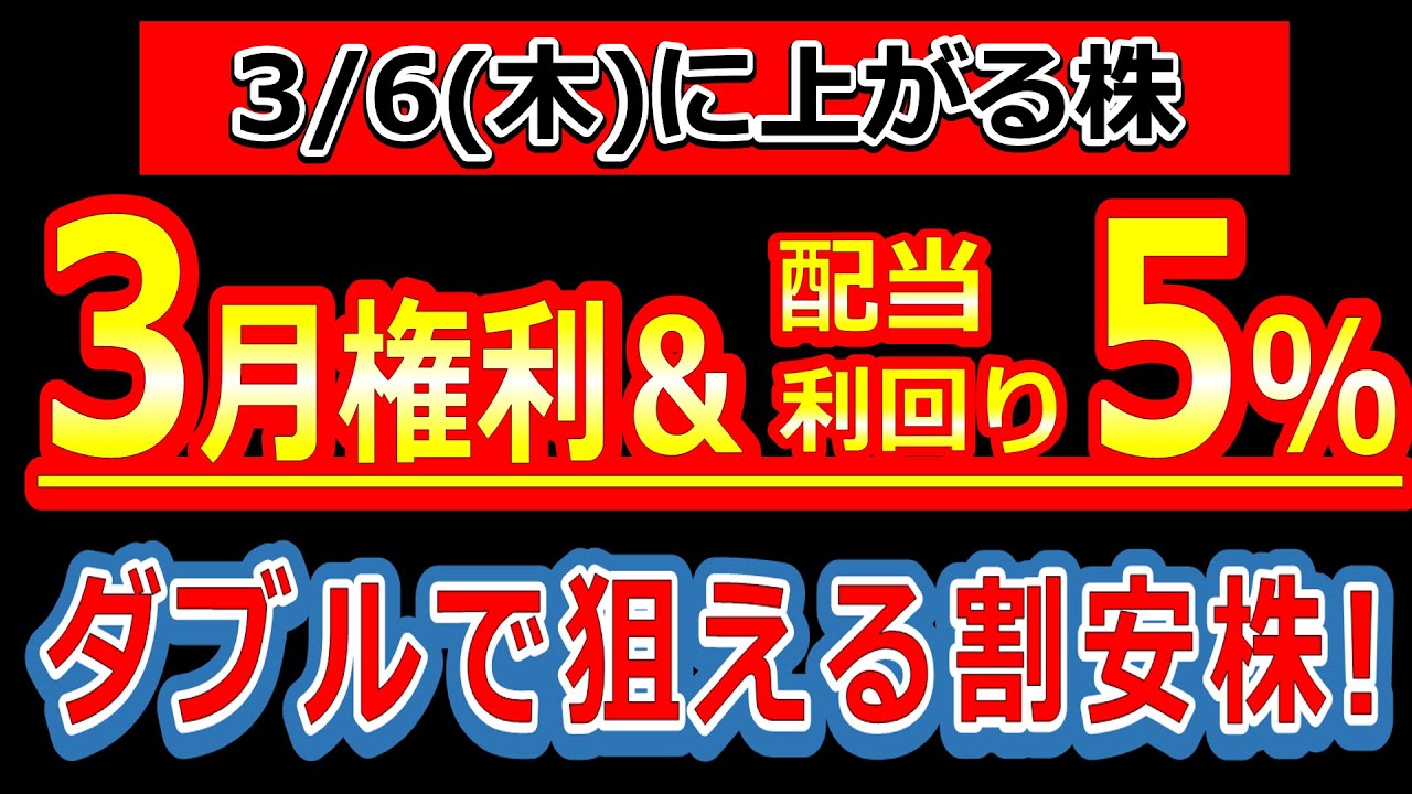 【本日はギュッと凝縮18分!!!3月権利&配当利回り5%!ダブルで狙える割安株!】3/6(木)に株価が上がる株/明日上がる株/バーゲン株/株式投資日本株最新情報は凄いですよね、、、株式優待の情報について語っているオススメのユーチューバー。