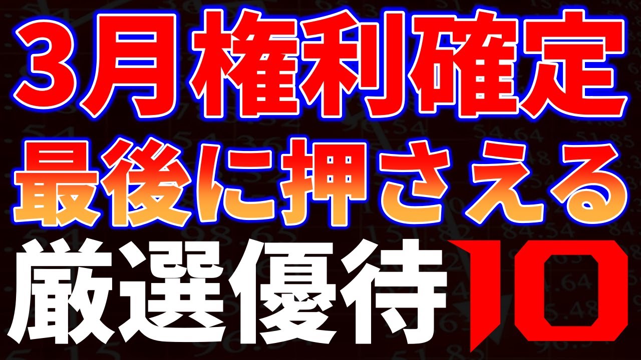 3月権利確定最後に押さえる厳選優待10銘柄は凄いですよね、、、株式優待の情報について語っているオススメのユーチューバー。