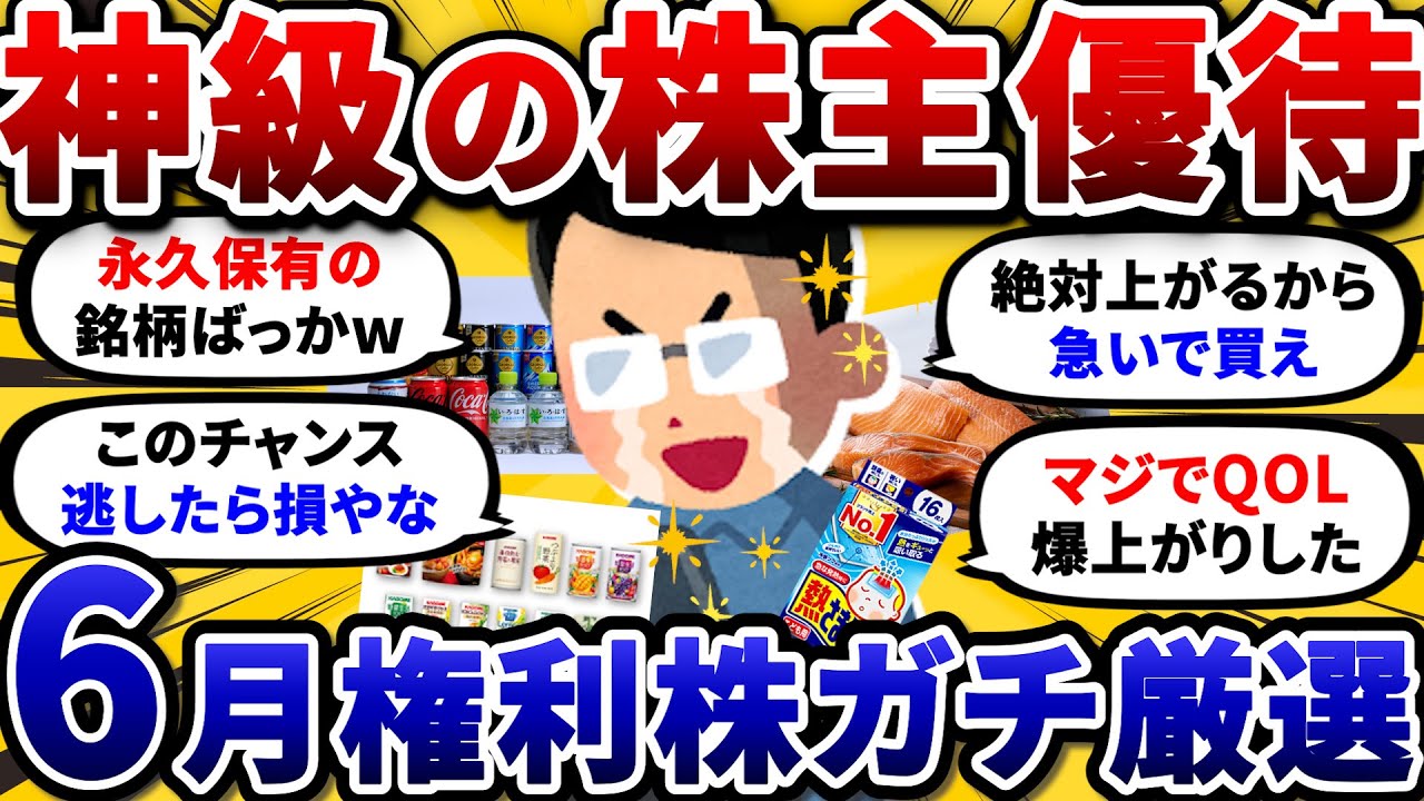 【2chお金スレ】6月権利確定のおすすめ株主優待銘柄を挙げていけ! 永久保有必須だから急いで買っとけw【2ch有益スレ】は凄いですよね、、、株式優待の情報について語っているオススメのユーチューバー。