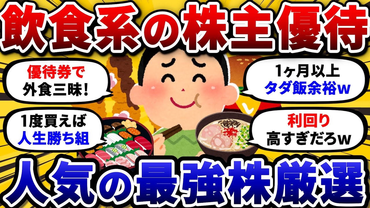 【2chお金スレ】飲食系のおすすめ株主優待を挙げていけ!これ買っときゃ外食はもう困らんww【2ch有益スレ】は凄いですよね、、、株式優待の情報について語っているオススメのユーチューバー。