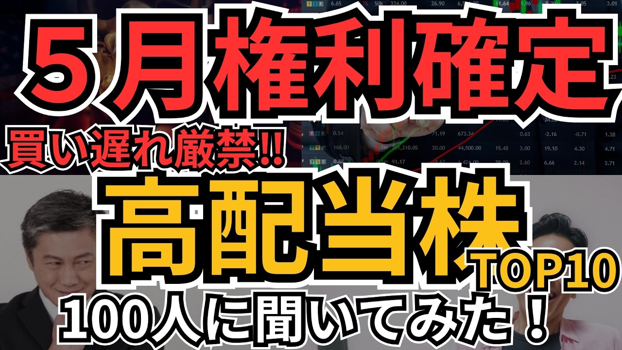5月権利確定・高配当株BEST10!100人アンケートで判明した「今買わないと後悔する」銘柄ランキング 優待もかなり充実していた!は凄いですよね、、、株式優待の情報について語っているオススメのユーチューバー。
