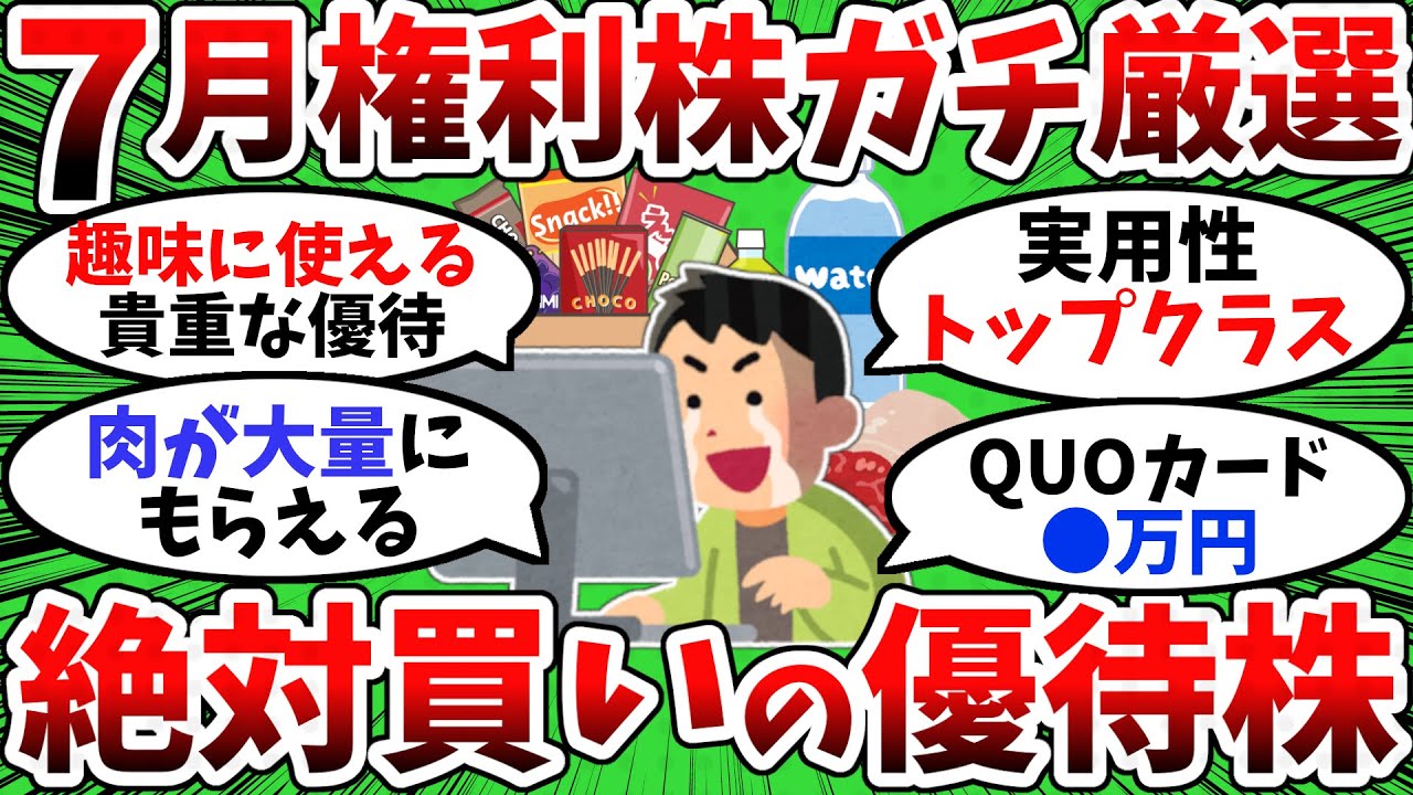 【2chお金スレ】7月権利確定の優待株買いたいからお前らのおすすめ教えてくれ【2ch有益スレ】は凄いですよね、、、株式優待の情報について語っているオススメのユーチューバー。