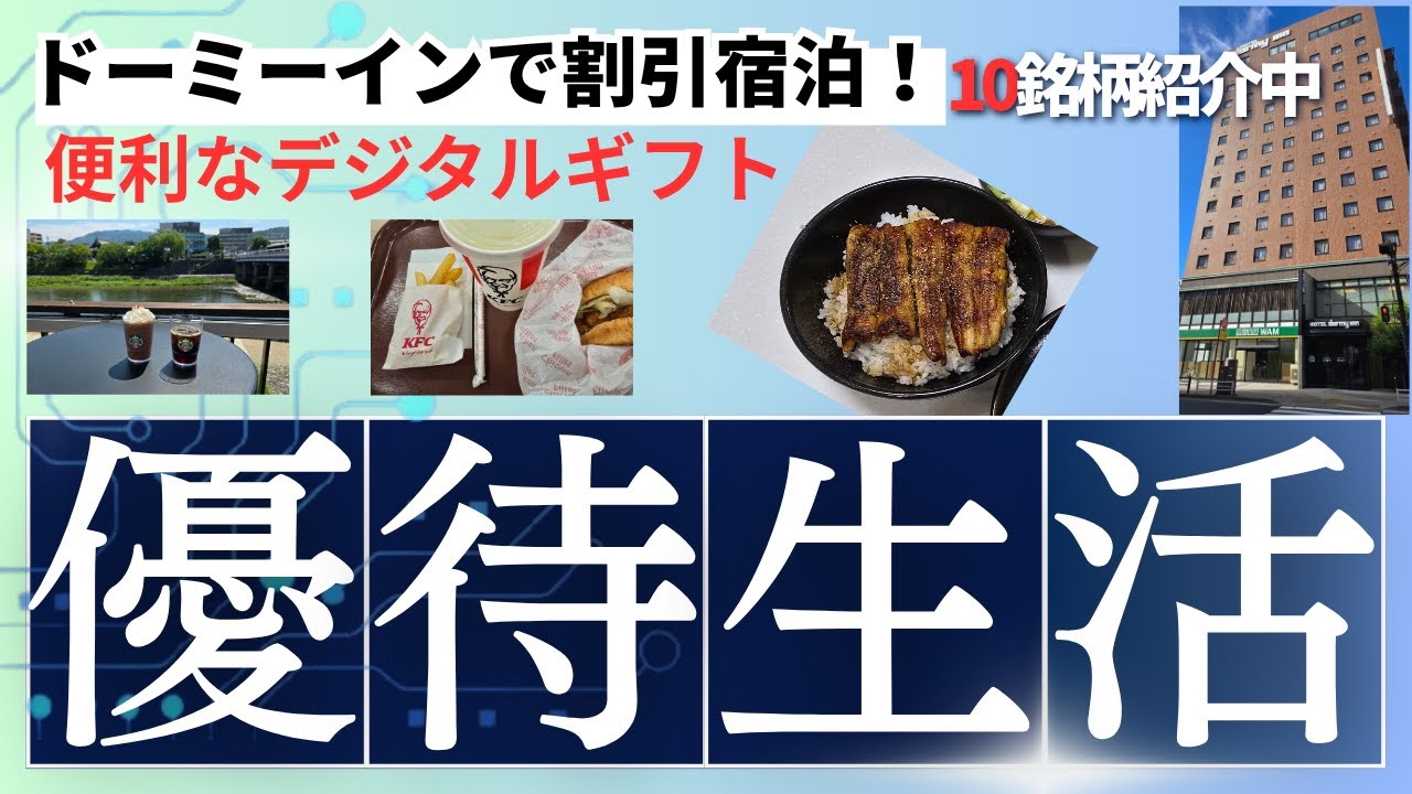 株主優待10銘柄ご紹介!共立メンテナンス「ドーミーイン姫路」優待旅行!便利日使えるスタバ&ケンタギフト、滋賀銀行、プレミアムウォーターの豪華カタログ、新茶、お米、鰻、あんぽ柿など盛りだくさんは凄いですよね、、、株式優待の情報について語っているオススメのユーチューバー。