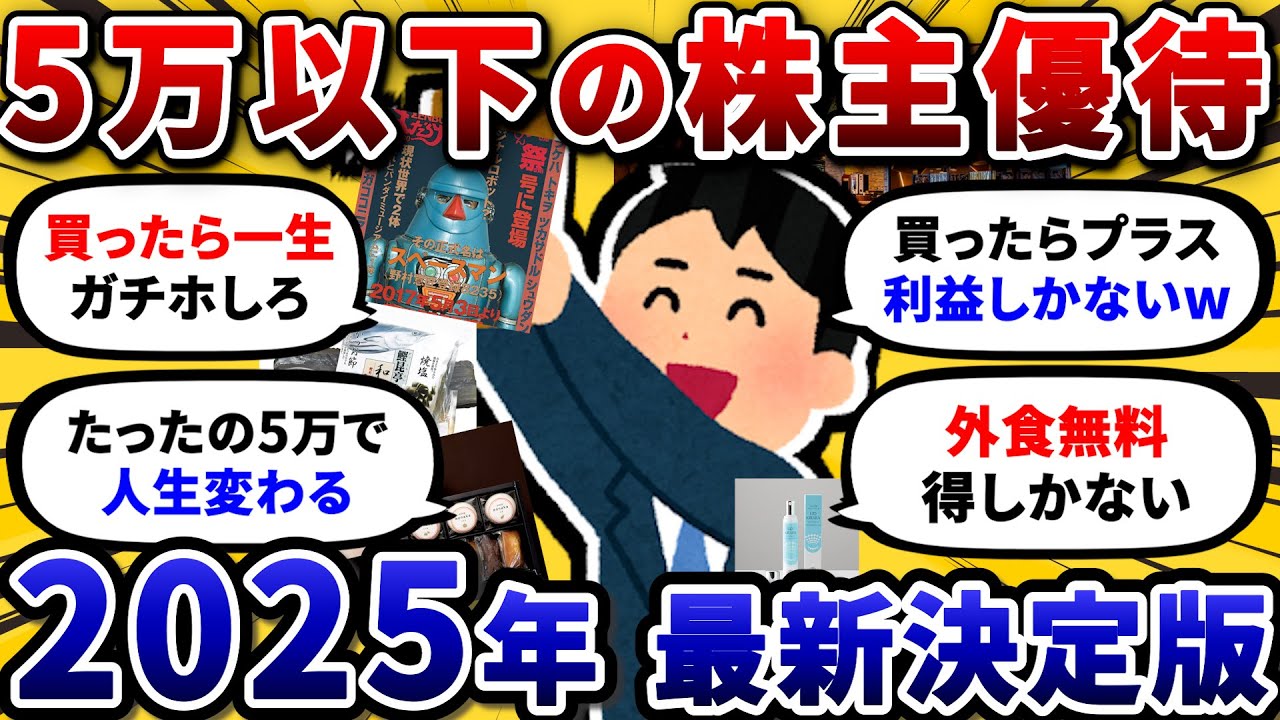 【2chお金スレ】5万円以下で貰える!おすすめの株主優待を挙げていけ!QOL爆上がりの最強銘柄ww【2ch投資スレ/永久保存版】は凄いですよね、、、株式優待の情報について語っているオススメのユーチューバー。