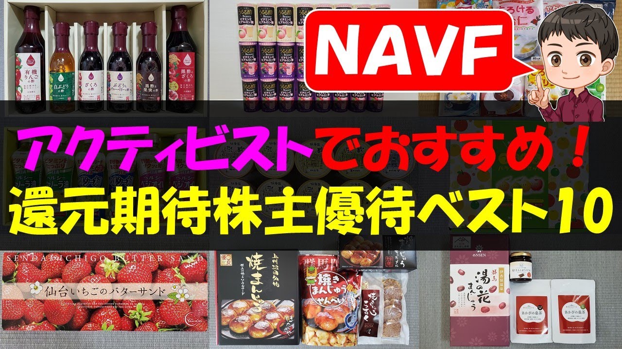【NAVF】アクティビストでおすすめ!還元期待株主優待ベスト10【株主優待】【貯金】は凄いですよね、、、株式優待の情報について語っているオススメのユーチューバー。