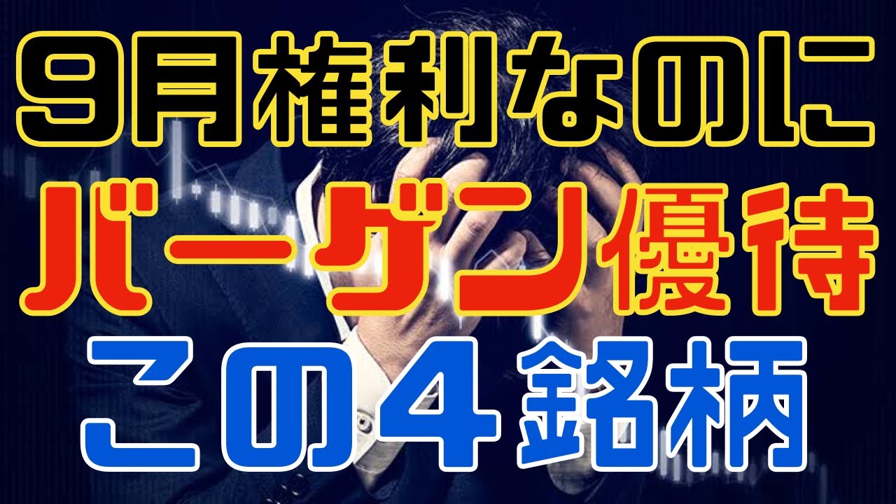 9月権利直前でもバーゲンセールな株主優待4銘柄!は凄いですよね、、、株式優待の情報について語っているオススメのユーチューバー。
