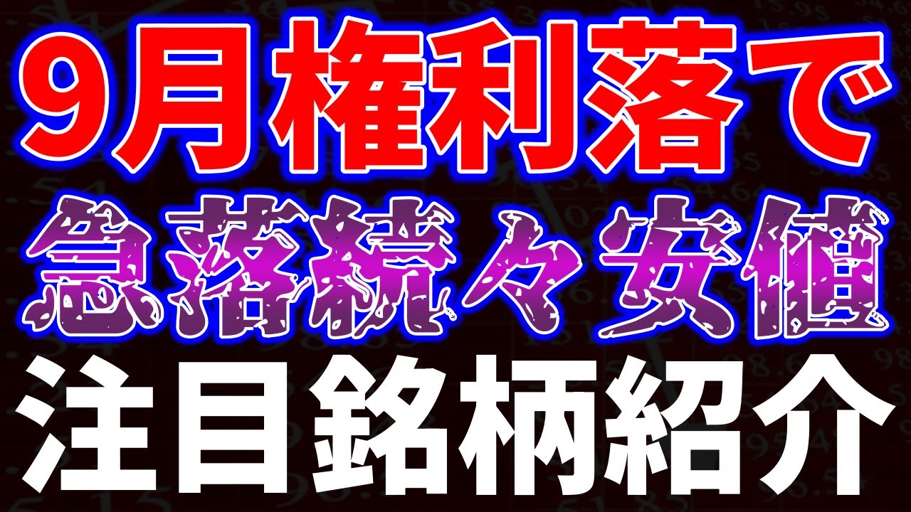 9月権利落ちで急落続々安値!注目銘柄紹介は凄いですよね、、、株式優待の情報について語っているオススメのユーチューバー。