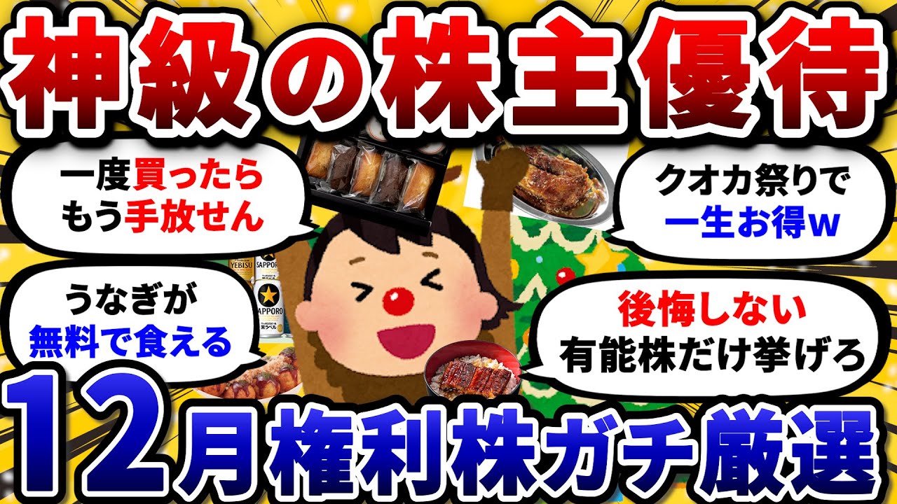 12月権利確定のおすすめ株主優待銘柄を挙げていけ。 ガチホ必須だから年末までに買っとけよw【2chお金や投資スレ】は凄いですよね、、、株式優待の情報について語っているオススメのユーチューバー。