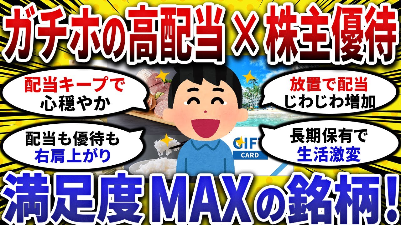 【2chお金スレ】満足度MAXの 高配当 × 株主優待 !安定配当の神銘柄を挙げてけ【 2ch有益スレ 】は凄いですよね、、、株式優待の情報について語っているオススメのユーチューバー。