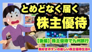 投資【お金返して!】【大量優待】まだまだ続く大量優待/九州優待旅行(後編) 【大量優待】まだまだ続く大量優待/九州優待旅行(後編)は凄いですよね、、、株式優待の情報について語っているオススメのユーチューバー。 前はブランドのレンタルの情報を整理していましたが、儲かって無さそうなので辞めました。 やっぱり... 2025.07.28投資