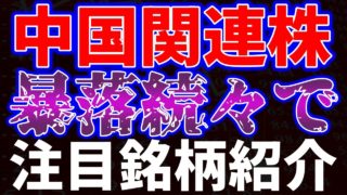 【お金返して!】中国関連株暴落続々で注目銘柄紹介!