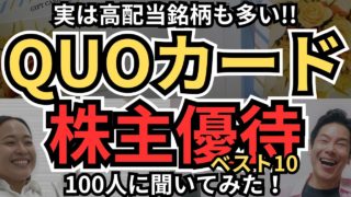 【お金返して!】【いくらあっても困らない】QUOカード株主優待、ベスト10、個人投資家100人に聞いてみた!優待利回り5%超えや年2回獲得、実は高配当銘柄も多い!