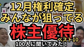 投資【お金返して!】【12月の株主優待】12月権利確定で、必ず押さえるべき優待銘柄は?総合利回り4~31%も!超お得なイチオシ優待銘柄、100人に聞いてみた! 【12月の株主優待】12月権利確定で、必ず押さえるべき優待銘柄は?総合利回り4~31%も!超お得なイチオシ優待銘柄、100人に聞いてみた!は凄いですよね、、、株式優待の情報について語っているオススメのユーチューバー。 前はブランドのレ... 2024.12.05投資