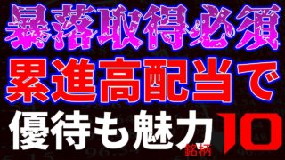 投資【お金返して!】暴落取得必須!累進高配当で優待も魅力銘柄10選 暴落取得必須!累進高配当で優待も魅力銘柄10選は凄いですよね、、、株式優待の情報について語っているオススメのユーチューバー。 前はブランドのレンタルの情報を整理していましたが、儲かって無さそうなので辞めました。 やっぱり儲けるな... 2024.12.06投資