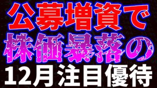 投資【お金返して!】公募増資で株価暴落の12月注目優待銘柄 公募増資で株価暴落の12月注目優待銘柄は凄いですよね、、、株式優待の情報について語っているオススメのユーチューバー。 前はブランドのレンタルの情報を整理していましたが、儲かって無さそうなので辞めました。 やっぱり儲けるなら株。更... 2024.11.26投資