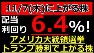 【お金返して!】アメリカ大統領選挙!トランプ勝利で上がる株!【11/7(木)に株価が上がる株・明日上がる株・株式投資日本株最新情報】