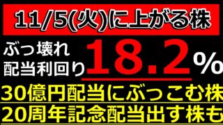 【お金返して!】配当利回り18.2%!30億円配当にぶっこむ株!【11/5(火)に株価が上がる株・明日上がる株・株式投資日本株最新情報】