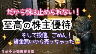 投資【お金返して!】【株主優待】極楽浄土とはまさにこのこと?!優待使って贅沢&お金の管理は計画的に!資金難の末の売却物語 【株主優待】極楽浄土とはまさにこのこと?!優待使って贅沢&お金の管理は計画的に!資金難の末の売却物語は凄いですよね、、、株式優待の情報について語っているオススメのユーチューバー。 前はブランドのレンタルの情報を整理していましたが、儲か... 2024.10.20投資