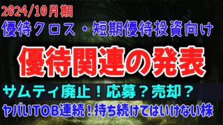 投資【お金返して!】【優待クロス】【短期優待投資】10月 決算シーズン 優待関連の発表 サムティ 優待廃止!市場売却?応募?催促相場の可能性? 凶悪ディスカウントTOB続出!持ち続けてはいけない優待株とは? 【優待クロス】【短期優待投資】10月 決算シーズン 優待関連の発表 サムティ 優待廃止!市場売却?応募?催促相場の可能性? 凶悪ディスカウントTOB続出!持ち続けてはいけない優待株とは?は凄いですよね、、、株式優待の情報について語っているオ... 2024.10.19投資