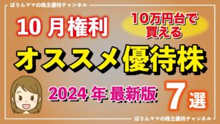 投資【お金返して!】【2024年最新版】10万円台で買える 10月権利のオススメ優待株7選 【2024年最新版】10万円台で買える 10月権利のオススメ優待株7選は凄いですよね、、、株式優待の情報について語っているオススメのユーチューバー。 前はブランドのレンタルの情報を整理していましたが、儲かって無さそうなので辞めました。... 2024.10.17投資