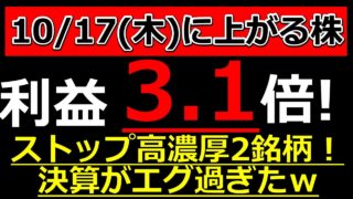 投資【お金返して!】ストップ高濃厚2銘柄!決算がエグ過ぎたw利益3.1倍【10/17(木)に株価が上がる株・明日上がる株・株式投資日本株最新情報】 ストップ高濃厚2銘柄!決算がエグ過ぎたw利益3.1倍【10/17(木)に株価が上がる株・明日上がる株・株式投資日本株最新情報】は凄いですよね、、、株式優待の情報について語っているオススメのユーチューバー。 前はブランドのレンタルの情報... 2024.10.17投資