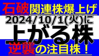 投資【お金返して!】2024/10/1(火)に株価が上がる株、株式投資・デイトレの参考に。石破関連株爆上げキテル!石破ショックから逆襲の注目株! 2024/10/1(火)に株価が上がる株、株式投資・デイトレの参考に。石破関連株爆上げキテル!石破ショックから逆襲の注目株!は凄いですよね、、、株式優待の情報について語っているオススメのユーチューバー。 前はブランドのレンタルの情報を... 2024.10.01投資
