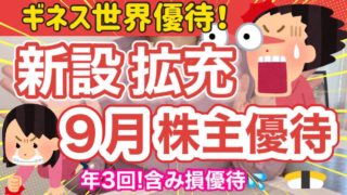 【お金返して!】【ギネス】9月株主優待!新設拡充優待!ギネス世界記録優待!年3回の含み損優待!計12銘柄紹介!